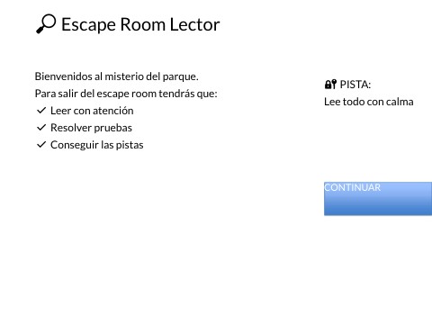 Bienvenidos al misterio del parque. Para salir del escape room tendrás que: ✔ Leer con atención ✔ Resolver pruebas ✔ Conseguir las pistas