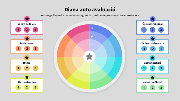 Arrosega l'estrella de la diana a la puntuació que mereixes segons els teus coneixements.