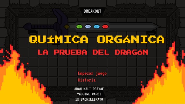 "La leyenda cuenta que un recóndito reino forjó una espada que, junto al poder de las Gemas Orgánicas, podría derrotar al caos molecular. Reúne las gemas de Formulación, Isomería Estructural, Óptica y Biomoléculas para completar el arma definitiva y vence al Dragón que custodia los secretos del Carbono. ¡Demuestra que dominas la química y escapa de la mazmorra!"