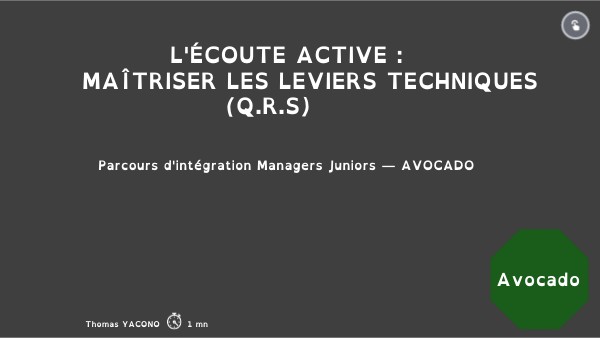 L'ÉCOUTE ACTIVE : MAÎTRISER LES LEVIERS TECHNIQUES (Q.R.S)