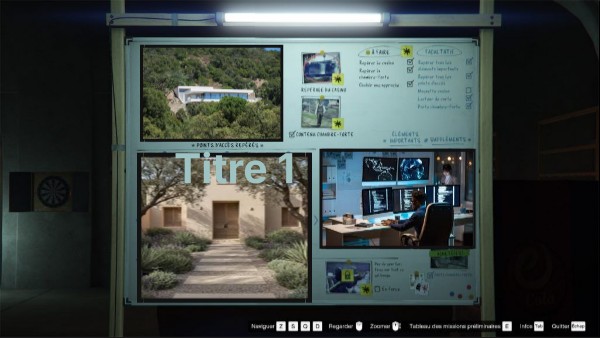 Objectif: Trouver les plans d'un groupe teroristes sur un pc. Ou:Dans une villa a Paris Pourquoi: un groupe teroristes menaces de hacker la banque de France Debut: un agent secret décide de s'infiltrer dans la villa d'un groupe teroristes pour trouver les plans de la cyber attack et les transmettres a la police. Entré de la villa: une porte est vérouiller par un code il faut trouver le code (enigme) Couloir principale: un lazers protegent l'entrée du salon trouver la salle de controle des lazers (point and click) Salle de controle: un code est demander pour accéder au pc qui controle les lazers (enigme) Couloir principale: les lazers sont desactiver ont peut avancer dans le salon et accéder a un plan de la maison. Sur le plan il y a plusieurs piece trouver celle qui accede au bureau (enigme)