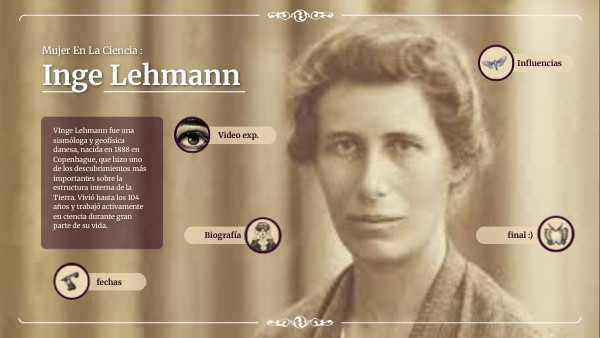 VInge Lehmann fue una sismóloga y geofísica danesa, nacida en 1888 en Copenhague, que hizo uno de los descubrimientos más importantes sobre la estructura interna de la Tierra. Vivió hasta los 104 años y trabajó activamente en ciencia durante gran parte de su vida.