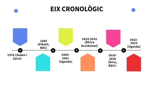 Descobriment: Es va identificar per primera vegada el 1976 en dos brots simultanis a Nzara (Sudan del Sud) i Yambuku (República Democràtica del Congo), prop del riu Ebola, d'on rep el nom. Eradicació: No s'ha erradicat. El virus persisteix en reservoris animals (principalment ratpenats de la fruita) i apareixen brots periòdics en humans.