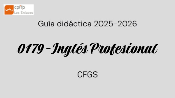 En este módulo profesional se establecen los siguientes resultados de aprendizaje (RA): RA 1: Reconoce información profesional y cotidiana contenida en todo tipo de discursos orales emitidos por cualquier medio de comunicación en lengua estándar, interpretando con precisión el contenido del mensaje. (Listening) RA 2: Interpreta información profesional contenida en textos escritos complejos, analizando de forma comprensiva sus contenidos. (Reading) RA 3: Emite mensajes orales claros y bien estructurados, analizando el contenido de la situación y adaptándose al registro lingüístico del interlocutor. (Speaking) RA 4: Elabora documentos e informes propios de la actividad profesional o de la vida académica y cotidiana, relacionando los recursos lingüísticos con el propósito del escrito. (Writing) RA 5: Aplica actitudes y comportamientos profesionales en situaciones de comunicación, describiendo las relaciones típicas y características del país de la lengua extranjera.