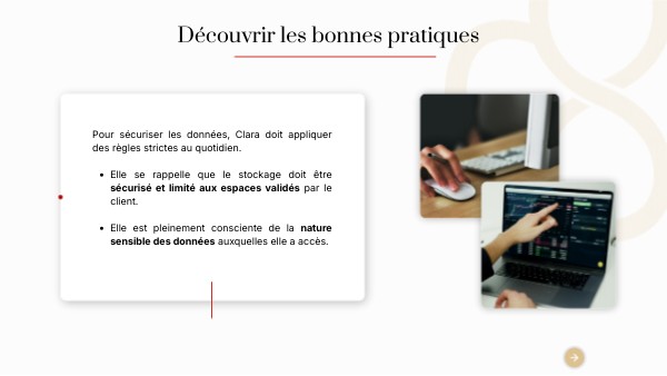 Pour sécuriser les données, Clara doit appliquer des règles strictes au quotidien.