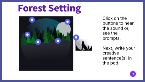 Click on the buttons to hear the sound or, see the prompts. Next, write your creative sentence(s) in the pod.