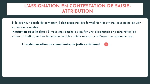 Instruction pour le clerc : Si vous êtes amené à signifier une assignation en contestation de saisie-attribution, vérifiez impérativement les points suivants, car l'erreur ne pardonne pas :