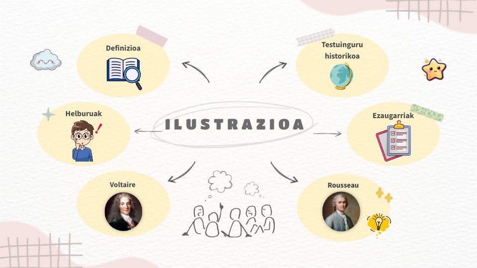 Ilustrazioa XVIII mendean sortu zen Europan. Gizartea estamentuen arabera antolatuta zegoen. Egoera horrek gero eta kritika handiagoa sortu zuen. Zientzia iraultza (Galileo, Newton) eta Arrazionalismoak arrazoia ezagutzaren oinarri nagusitzat hartu zuten. Ilustratuek uste zuten gizakia bere kabuz pentsatzeko gai zela, eta arrazoia erabiliz aurrerapena lortu zitekeela. Testuinguru horretan sortu ziren ideia nagusiak: askatasuna, berdintasuna, tolerantzia erlijiosoa, botereen banaketa eta hezkuntza unibertsala. Ideia hauek eragin handia izan zuten iraultza nagusietan; Amerikako Iraultza (1776) eta Frantziako Iraultza (1789).