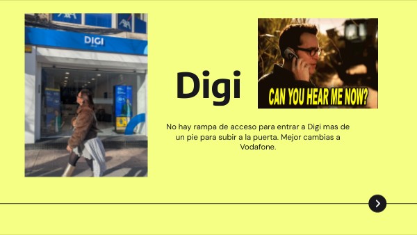 No hay rampa de acceso para entrar a Digi mas de un pie para subir a la puerta. Mejor cambias a Vodafone.