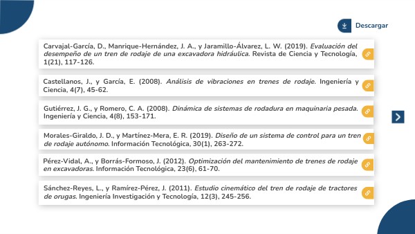 Sánchez-Reyes, L., y Ramírez-Pérez, J. (2011). Estudio cinemático del tren de rodaje de tractores de orugas. Ingeniería Investigación y Tecnología, 12(3), 245-256.