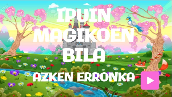 Kaixo berriro, lagunok! 5. erronka gainditu duzue. Zorionak! Prest zaudete azken erronkarekin hasteko? Orduan, hitz magikoak esan behar dituzue eta ondoren, ukitu beheko gezia. Zorte on, talde! Hona hemen hitz magikoak: Ipuinak salbatu nahi ditugu!