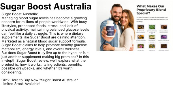 Sugar Boost Australia: Managing blood sugar levels has become a growing concern for millions of people worldwide. With busy lifestyles, processed foods, stress, and lack of physical activity, maintaining balanced glucose levels can feel like a daily struggle. This is where dietary supplements like Sugar Boost are gaining attention. Marketed as a natural blood sugar support formula, Sugar Boost claims to help promote healthy glucose metabolism, energy levels, and overall wellness. But does Sugar Boost truly live up to the hype, or is it just another supplement making big promises? In this in-depth Sugar Boost review, we’ll explore what the product is, how it works, its ingredients, benefits, possible drawbacks, and whether it’s worth considering. Click Here to Buy Now "Sugar Boost Australia" – Limited Stock Available!