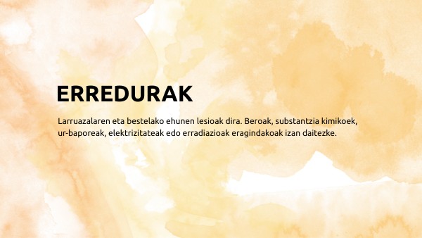 3.MAILAKO ERREDURA: dermisaren geruza sakonak, muskuluak, odol-hodiak eta nerbioak, nakar koloreko edo eskara beltzak, nerbioak suntsituta daudenez minik ez dago.