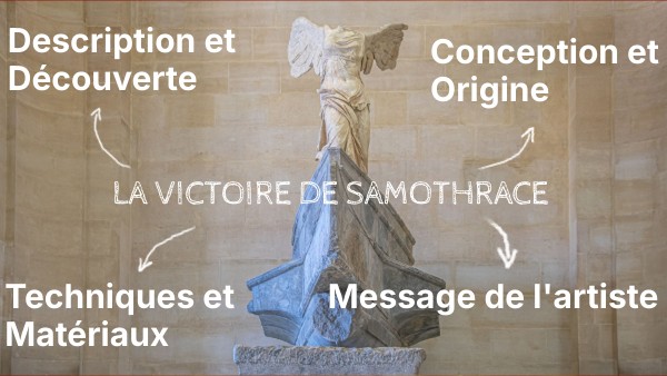 La Victoire de Samothrace est une statue grecque en marbre pesant environ 30 tonnes et mesurant 5,12 mètres (hauteur totale) créée entre 200 av. J.-C. et 185 av. J.-C. pendant la période hellénistique en Grèce. Elle a été découverte en 1863 par Charles Champoiseau au sanctuaire des Grands Dieux (qui est un important centre religieux du monde grec) sur l’île de Samothrace au nord de la mer Egée.