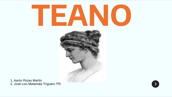 Teano fue hija del atleta Milón de Crotona, mecenas del filósofo y matemático Pitágoras, con quien luego se casó. Se le atribuye haber escrito tratados de matemáticas, física y medicina, y también sobre la proporción áurea. Se conservan fragmentos de sus cartas. La mayor parte de los textos que nos han llegado de mujeres de esta época, quizá por ser los que resultaban más interesantes a los religiosos que los han conservado, hablan de problemas morales o prácticos. A Téano se le atribuye un tratado Sobre la piedad del que se conserva un fragmento con una disquisición sobre el número. Además se le atribuyen los tratados sobre los poliedros rectangulares y sobre la teoría de la proporción, en particular sobre la proporción áurea.