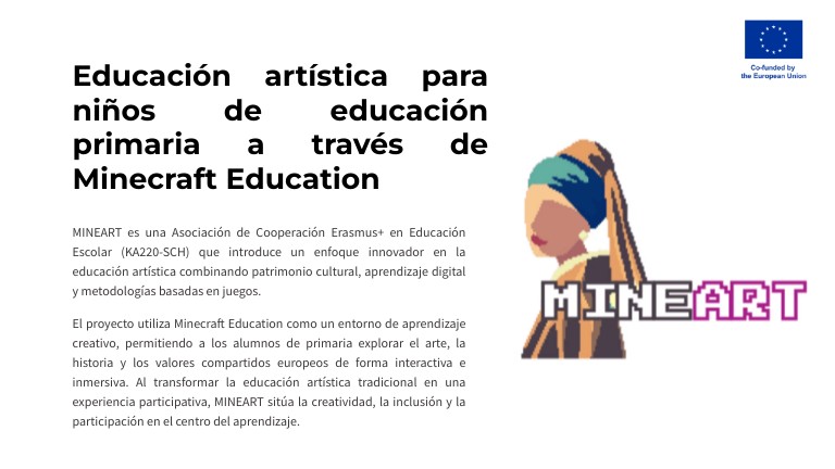 El proyecto utiliza Minecraft Education como un entorno de aprendizaje creativo, permitiendo a los alumnos de primaria explorar el arte, la historia y los valores compartidos europeos de forma interactiva e inmersiva. Al transformar la educación artística tradicional en una experiencia participativa, MINEART sitúa la creatividad, la inclusión y la participación en el centro del aprendizaje.