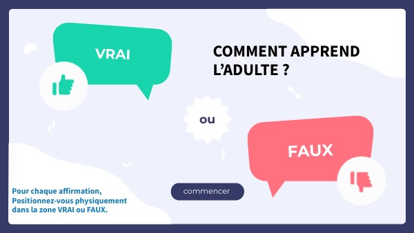 Pour chaque affirmation, Positionnez-vous physiquement dans la zone VRAI ou FAUX.