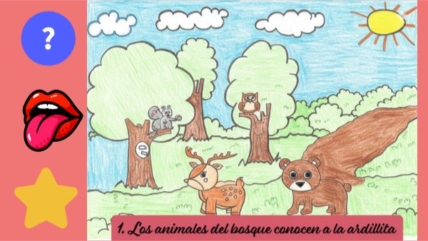 - Caminar: Hacer claqueo (chasquido) con la lengua. (Lingual).- Picar: Inflar los carrillos y apretar los labios impidiendo que salga el aire por la boca. Después deberá salir de forma explosiva venciendo la resistencia de los labios. (Mejillas). - Abrir: Abrir la boca despacio y cerrarla rápidamente. (Mandibular, labial). - Asomar: Sacar despacio la lengua todo lo posible y meterla rápidamente escondiéndola muy adentro. (Lingual). - Coger la nuez: Con la boca cerrada, presionar con la lengua la mejilla derecha e izquierda. (Mejilla, lingual). - Comer la nuez: Masticar haciendo fuerza con los molares. (Mandibular) - ¡Qué rica!: Con la boca semiabierta sacar la lengua y tocar los labios alternativamente. (Lingual).
