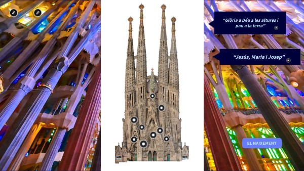 La façana de la Passió mostra els últims dies i la mort de Jesús, el seu patiment i sacrifici per la humanitat. Va ser dissenyada per Antoni Gaudí i les escultures les va fer Josep Maria Subirachs amb un estil molt expressiu.