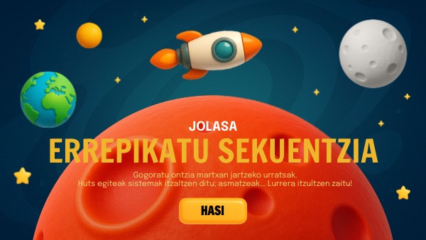 Estralurtarrak bizi diren planeta hezigabe batean lurreratu zara. Zure ontziak segurtasun-protokoloa aktibatu du baten bat kontrola hartzen saia ez dadin. Zuk bakarrik berraktiba dezakezu. Erakutsi zure asmamena segurtasun-sekuentzia behar bezala errepikatuz motorrak piztu eta Lurrara itzultzeko!