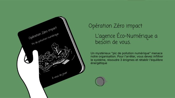 Un mystérieux "pic de pollution numérique" menace notre organisation. Pour l'arrêter, vous devez infiltrer le système, résoudre 3 énigmes et rétablir l'équilibre énergétique