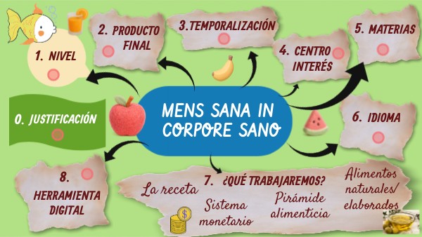 Me parece interesante y esencial trabajar los hábitos saludables relacionados con la alimentación sana y equilibrada dado el elevado índice de obesidad existente en la actualidad. Para ello, trabajaremos la pirámide alimenticia, la diferenciación entre alimento natural y elaborados principalemente. Realizaremos una receta saludable, veremos qué obras artísticas existen relacionadas con esta temática y finalemnte, realizaremos un mercado en el que podrán convertirse en compradores y vendedores. A todo ello le daremos un toque de motivación extra haciedno uso de juegos interactivos y herramientas digitales como Canva.