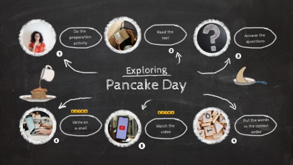 Write an e-mail to your English teacher explaning what have you learnt about pancake day. Include an image about a pancake race.