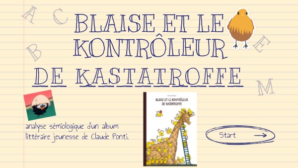 Langage déformé : "kontrôleur" et "kastatroffe" signe : orthographe volontairement incorrecte. signifiant : écriture déformée, enfantine, basée sur des sons. signifié : l'imaginaire enfantin, la liberté créative, vision enfantine du langage.