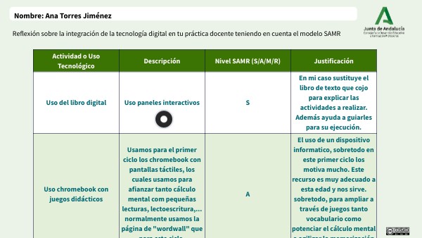 Reflexión sobre la integración de la tecnología digital en tu práctica docente teniendo en cuenta el modelo SAMR