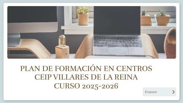 Durante algunos años, el CEIP Villares de la Reina lleva abordando la formación del profesorado a través de Planes de Formación en Centros con una valoración muy positiva, por lo que, para este curso, se decide continuar con esta dinámica. Para el curso 2025/20'26 se plantea, por tanto, dentro de este Plan de Formación, capacitar al profesorado en el uso efectivo de herramientas de Inteligencia artificial y de Radio con el fin de poder incluir elementos transformadores de los procesos de enseñanza aprendizaje. visu