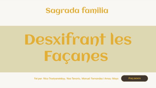 Gaudí va voler, a la manera medieval, que la Sagrada Família fora una gran Bíblia de pedra. Per això va dotar cada espai del temple de la simbologia més adequada i representativa. Així, va representar en les tres façanes del temple els tres moments més transcendentals de la vida de Jesús: el naixement, la mort i la resurrecció, i la glòria.