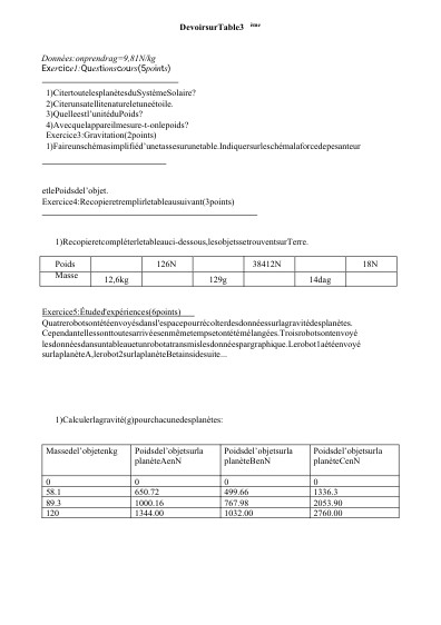 etlePoidsdel’objet.Exercice4:Recopieretremplirletableausuivant(3points)