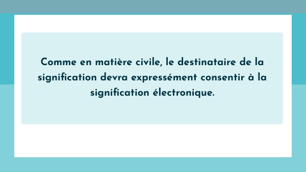 Comme en matière civile, le destinataire de la signification devra expressément consentir à la signification électronique.