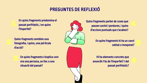 Quins fragments parlen de coses que passen sovint i perduren, i quins d'accions puntuals que s'acaben?