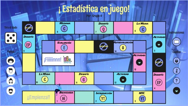 Descubre un mundo emocionante donde la estadística y la probabilidad se encuentran en cada esquina. En nuestro juego, desafiarás tus habilidades numéricas y estratégicas mientras exploras conceptos fundamentales de estadística y probabilidad. ¡Prepárate para sumergirte en una aventura educativa y emocionante que pondrá a prueba tu ingenio y te llevará a nuevas alturas de comprensión matemática! ¡Bienvenido a "Estadística en Juego"!