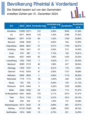 Bevölkerungsstatistik 2026 (Rheintaler)