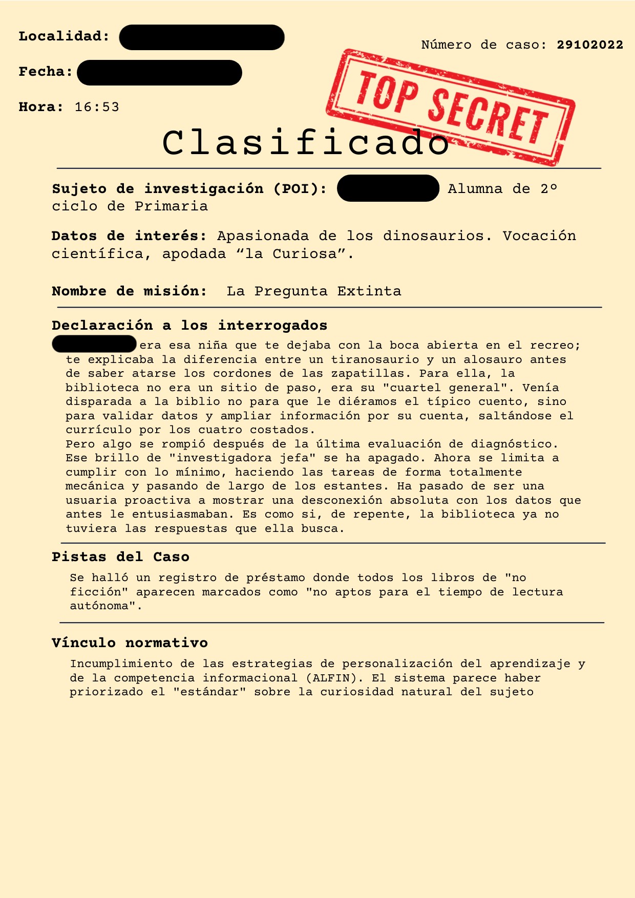 Basándoos en vuestra experiencia diaria, ¿qué "golpes" o malas prácticas pedagógicas creéis que ocurrieron en la sombra para que este alumno/a dejara de leer?