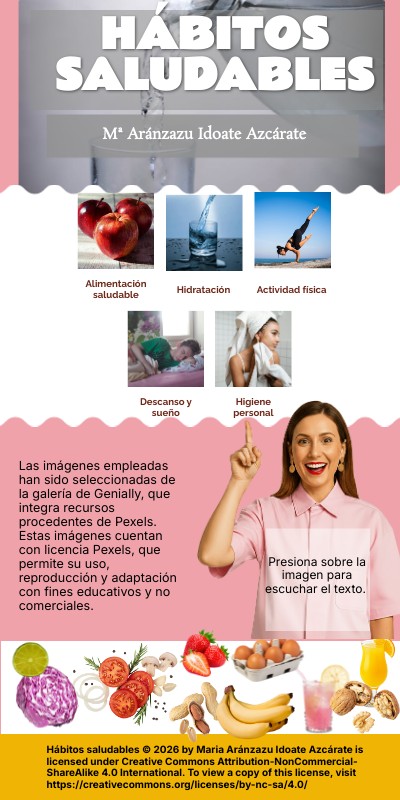 Hábitos saludables © 2026 by Maria Aránzazu Idoate Azcárate is licensed under Creative Commons Attribution-NonCommercial-ShareAlike 4.0 International. To view a copy of this license, visit https://creativecommons.org/licenses/by-nc-sa/4.0/