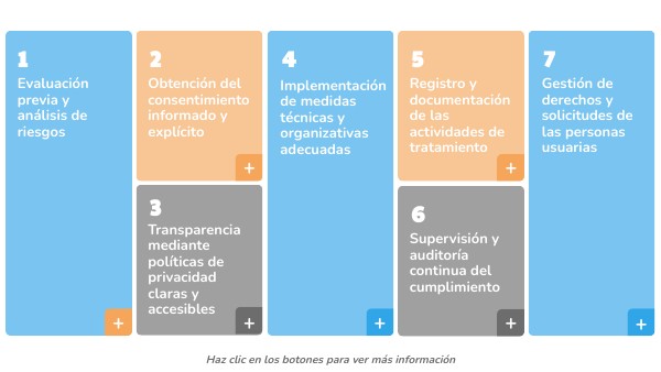 La información sobre la captación y tratamiento de datos debe estar plasmada en políticas de privacidad fácilmente accesibles y redactadas en lenguaje claro y sencillo. Estas políticas deben incluir: