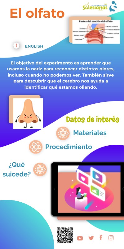 El objetivo del experimento es aprender que usamos la nariz para reconocer distintos olores, incluso cuando no podemos ver. También sirve para descubrir que el cerebro nos ayuda a identificar qué estamos oliendo.