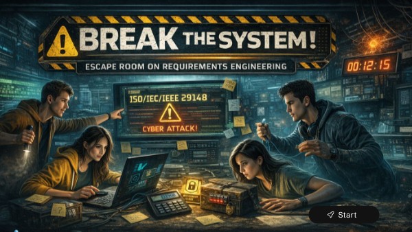 The International Requirements Engineering Agency (IREA) has been hit by a massive cyberattack. The central system, responsible for managing all project requirements, has been compromised. Crucial documents have been fragmented and scattered across the network. Teams of elite agents must recover, analyze, and reconstruct the lost information before the system collapses completely. Each student group becomes a specialized division: Alpha, Beta, or Gamma. Each division must complete missions that blend logic, observation, communication, and applied knowledge of requirements engineering. Only through proper collaboration can the full system be restored.