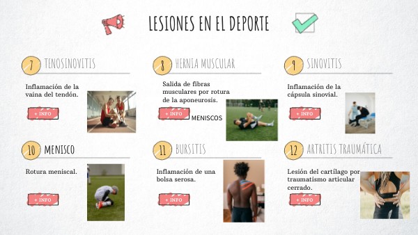 Síntomas: Dolor con el movimiento. Inflamación y enrojecimiento. Crepitación a la palpación. Tratamiento: Igual que la tendinitis.