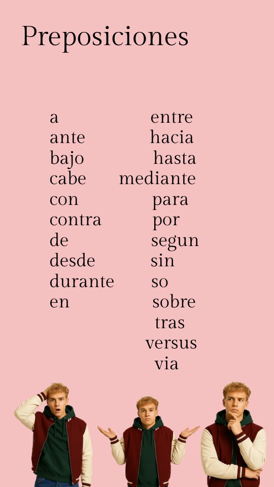 a entreante hacia bajo hasta cabe mediante con para contra por de segun desde sin durante so en sobre tras versus via
