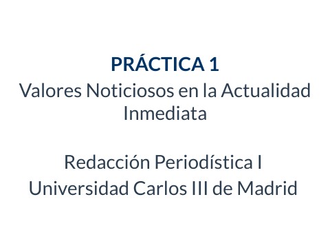 PRÁCTICA 1 Valores Noticiosos en la Actualidad Inmediata Redacción Periodística I Universidad Carlos III de Madrid