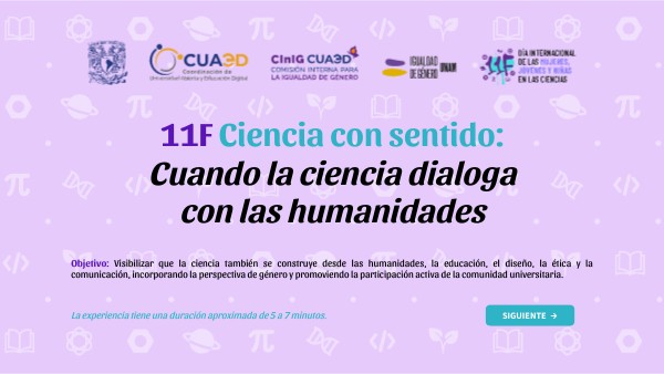 Objetivo: Visibilizar que la ciencia también se construye desde las humanidades, la educación, el diseño, la ética y la comunicación, incorporando la perspectiva de género y promoviendo la participación activa de la comunidad universitaria.