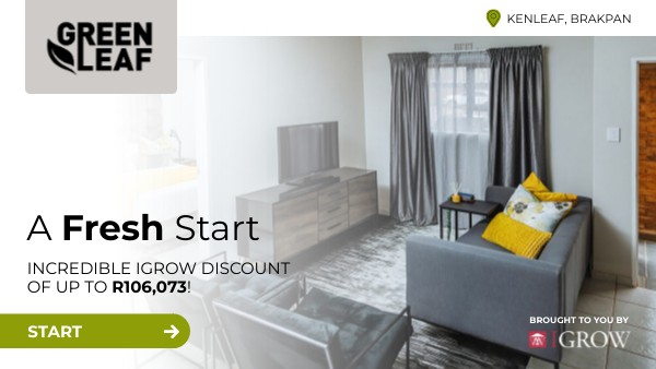 Disclaimer: IGrow makes no warranties, whether expressed or implied, regarding contents, accuracy, financial projections and/or assumptions, nor availability. The User assumes all responsibility and risk for the use of the information and othermaterial provided. IGrow shall not be liable for any loss, injury, damage, cost, penalty, or claim resulting from the use of the materials or projections/assumptions, whether direct or indirect. The User indemnifies IGrow and holds it harmless against any and all liability, loss, damage, penalty, cost or claim of whatsoever nature suffered by any third party concerning any act or omission by the User in relation to the information and the use thereof by the User. Attorney and bond fees for transfer paid by Seller only where appointed attorney attends transfer. This may exclude buyers using bank facilities. Fees excluding any bank initiation fee, correspondent attorney fees and courier fees if applicable. Footnotes: *Depending on unit chosen. **Rental assist only applicable where buyer signs a rental mandate with IGrow Rentals for the duration of the rental assist offering.