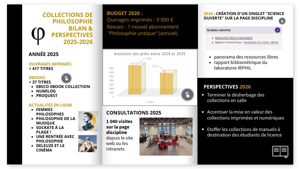 BUDGET 2026 : Ouvrages imprimés : 9 000 € Revues : 1 nouvel abonnement "Philosophie antique" (annuel)