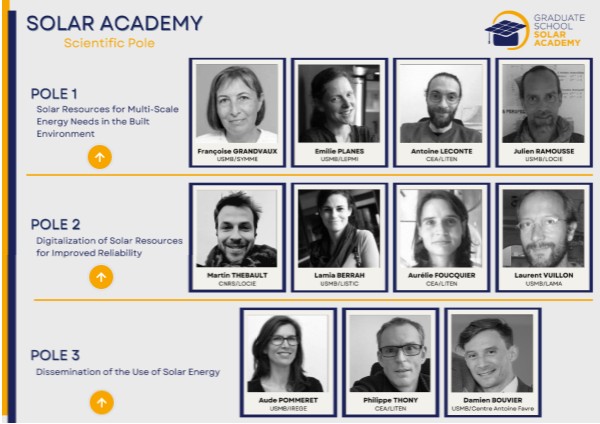 Information technology and data sciencesImproving the accuracy of solar potential assessments in the built environment requires interconnected tools capable of handling multi-scale modelling and advanced digital platforms. The deployment of solar energy also depends on smart metering, decision-support systems, and multi-criteria evaluation frameworks. Addressing these challenges demands a broad skill set spanning mathematics, information theory, and digital and data sciences. A comprehensive platform must integrate 2D/3D modelling tools, robust mathematical and scientific computation, high-performance computing, and large-scale data processing, including image analysis and deep learning, to ensure system performance and reliability. This theme leverages the MUST meso-centre computing facility (part of the European Grid Initiative) and connects with the Equipex DURASOL, which provides insights into solar component ageing and failure mechanisms.