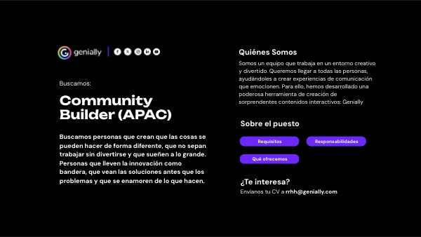 - Gestionar y fomentar el crecimiento y la activación de la Comunidad Genially en el mercado de APAC.