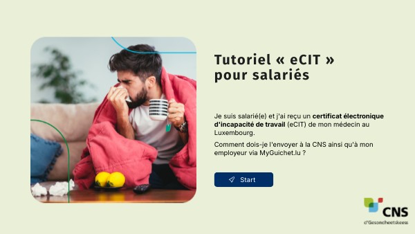 Je suis salarié(e) et j'ai reçu un certificat électronique d'incapacité de travail (eCIT) de mon médecin au Luxembourg. Comment dois-je l'envoyer à la CNS ainsi qu'à mon employeur via MyGuichet.lu ?